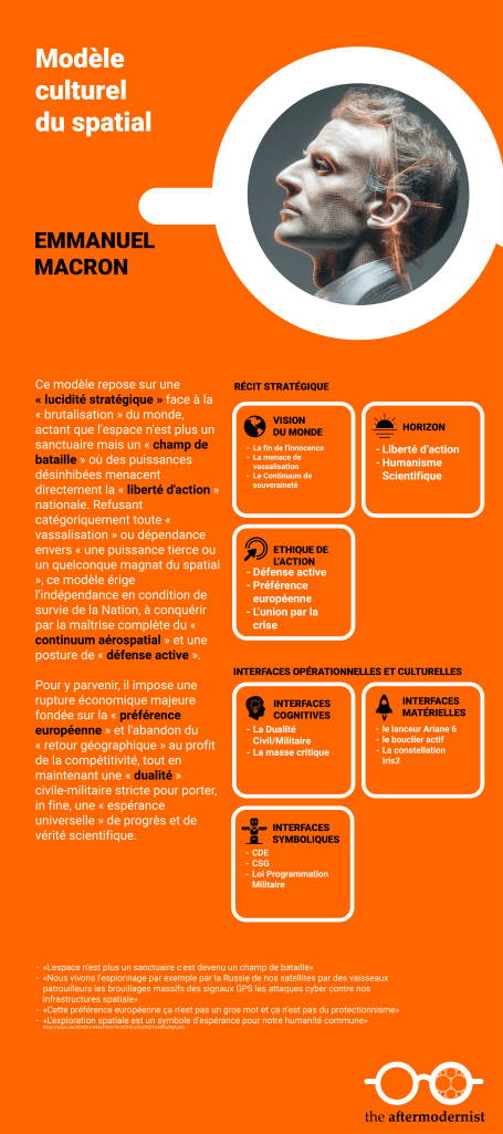 - L’espace comme infrastructure utilitaire : l’Europe pense le rôle de l’espace en termes d’ »utilité sociale ». La fierté repose sur des infrastructures au service de la société actuelle (climat, navigation, météo). Thomas Pesquet incarne cette vision où l’espace est un lieu d’ »apprentissage scientifique ».