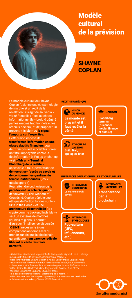 Pour comprendre la puissance affirmée de ce modèle, il faut revenir à l’impulsion initiale : la proclamation de la faillite des experts. Shayne Coplan (Polymarket) raconte ainsi l’émergence de sa plateforme durant le chaos informationnel du Covid-19 : « C’était tout simplement impossible de distinguer le signal du bruit… alors je me suis dit ‘Et merde, je vais le construire moi-même’ (F* it, I’m going to go build this) ».